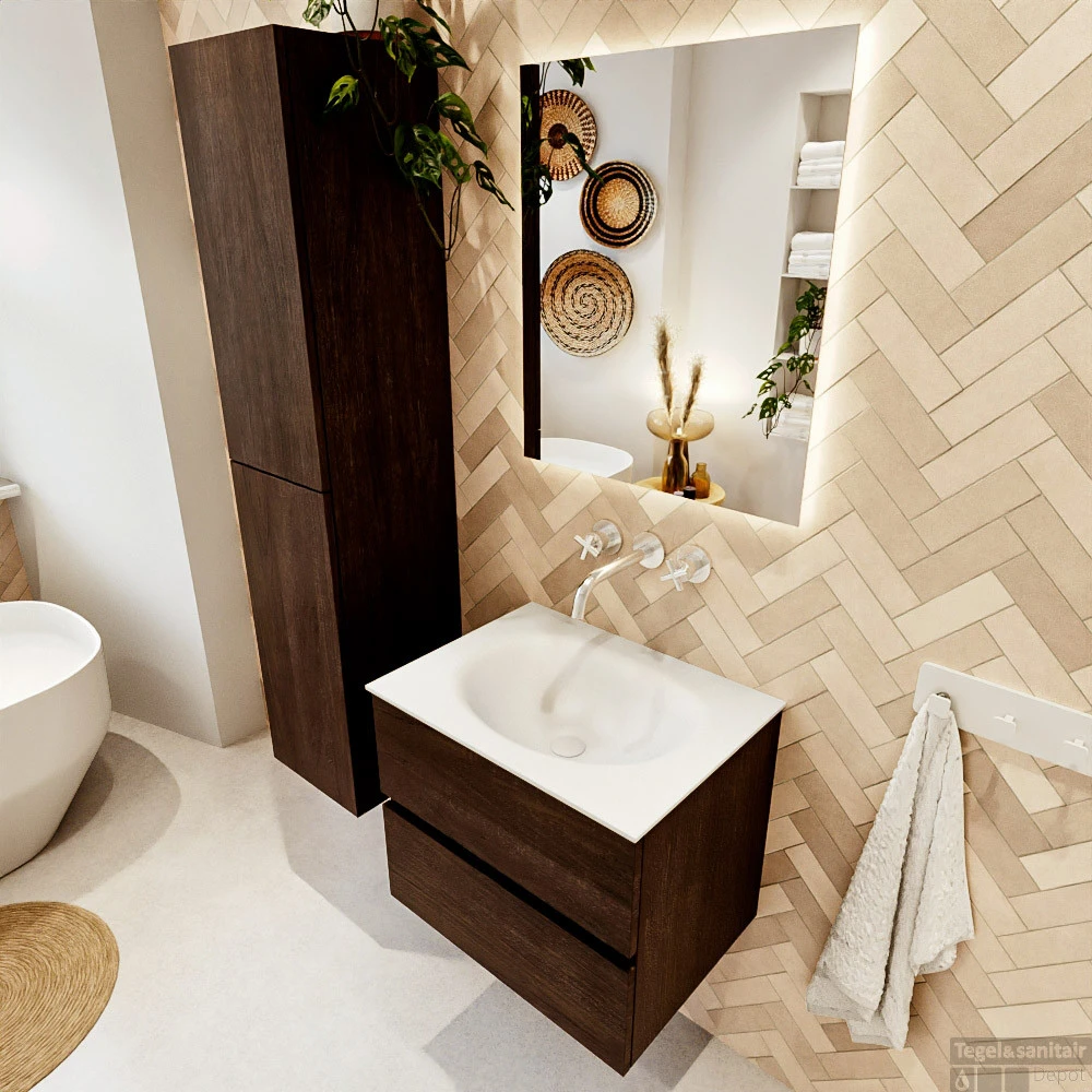 Of u kiest voor kleur of een houtlook, een speciale maat badmeubel, wel of geen kraangaten de badkamermeubel set Vica heeft het allemaal. U heeft bij de Vica badkamermeubel set de keuze uit 3 modellen wastafels de CLOUD en de MOON in Solid Surface met de opties de waskom rechts, links, midden of dubbel en wel of geen kraangaten. En de DENIA keramische wastafel met de opties midden en dubbel.