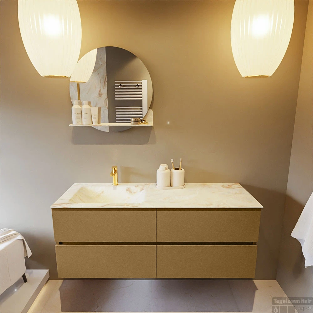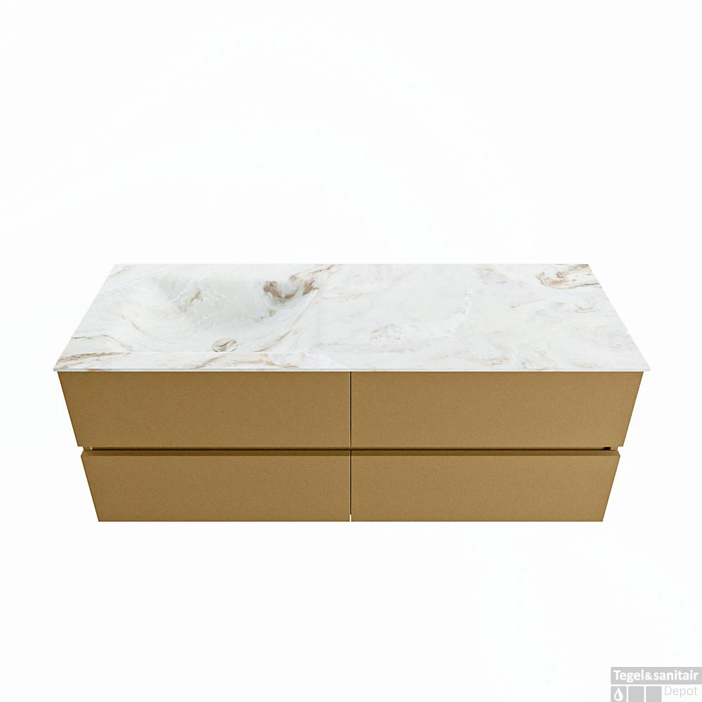 De buitengewone mooie badmeubel set VICA DLUX is een schitterend pronkstuk in uw badkamer. De gemarmerde Solid Surface wastafel van CORIAN heeft een fraaie en tijdloze uitstraling. Door de zachte en natuurlijke vorm van de wastafel, gecombineerd met de tijdloze en prachtige badmeubel onderkast past de VICA-DLUX goed bij de diverse stijlen badkamers. Om uw badkamer compleet te af te stijlen hebben wij ook de nissen en spiegelhouders in dezelfde kleur als de wastafel. Zoals de nissen en spiegel planchetten. De serie VICA DLUX bestaat uit de 2 of 4 laden onderkast VICA gecombineerd met een CORIAN Solid Surface wastafel met marmer structuur. De Solid Surface CORIAN wastafel is in 5 marmer looks verkrijgbaar. Met deze badkamermeubel set heeft u wel die mooie marmeren uitstraling maar tevens ook het gemak en de hygiëne van Solid Surface.