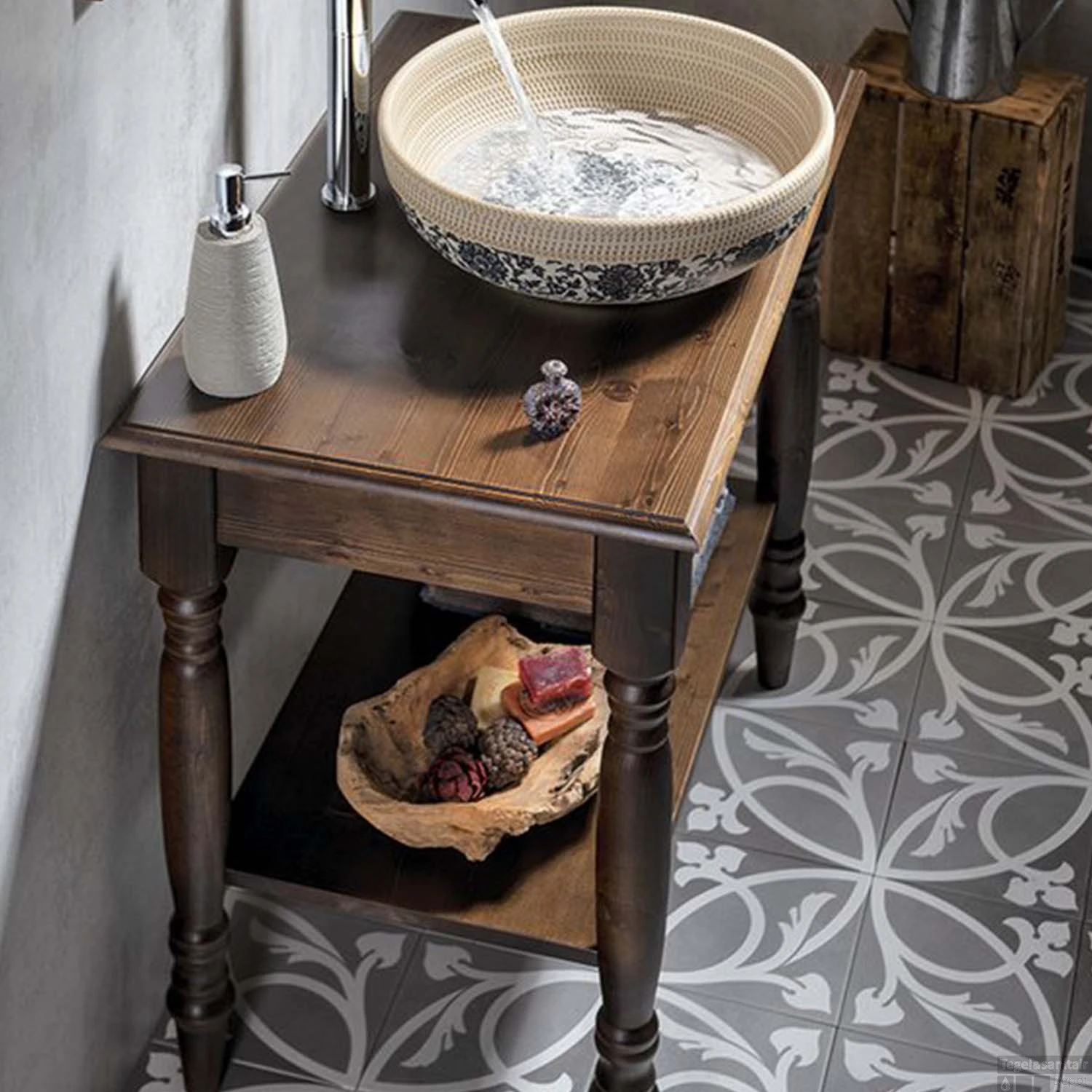 Bent u opzoek naar een klassiek en ruimtelijk badkamermeubel? Dan is dit meubel iets voor u. Dit badkamermeubel is gemaakt van massief hout en heeft dankzij zijn rondingen een landelijk uiterlijk. Dankzij de legplank onderaan heeft u genoeg opberg plek voor uw handdoeken of verzorgingsproducten. Dit meubel is zeer geschikt voor in een kleinere badkamer en doet uw badkamer er ruimtelijker eruit zien. Hij is 100 cm breed, 50 cm diep en 75 cm hoog. Voorzie het meubel van een grote waskom om uw badkamer helemaal af te maken.