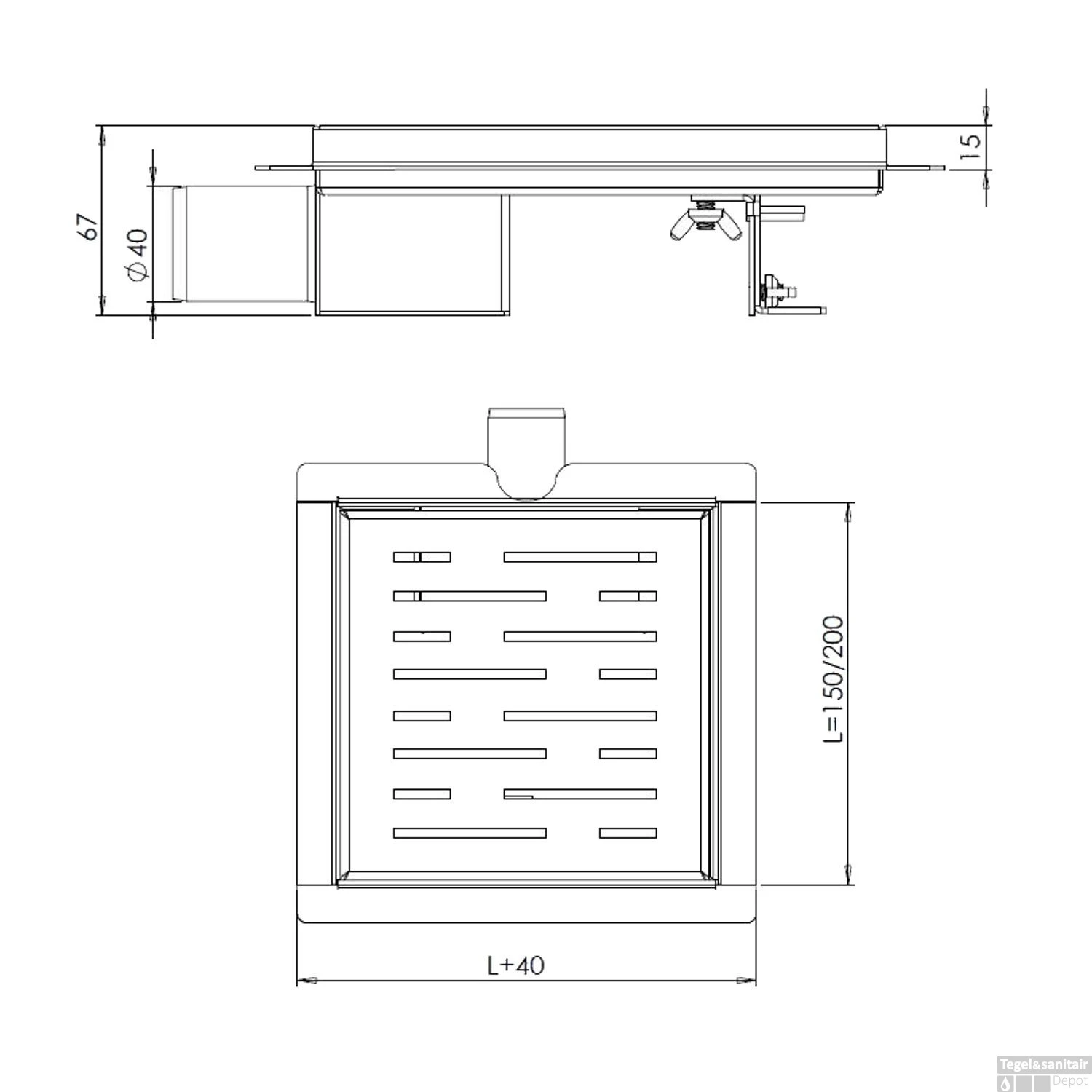 RVS Doucheput 20x20cm. met flens / 3de Generatie