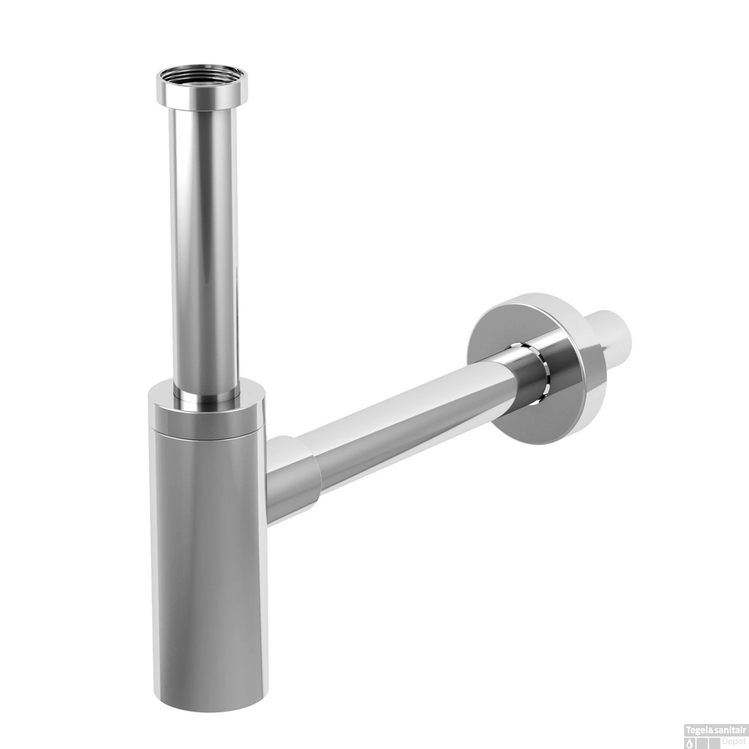 Deze strak vormgegeven universele sifon is een prachtige eyecatcher. De muurbuis heeft een diameter van 32 millimeter.