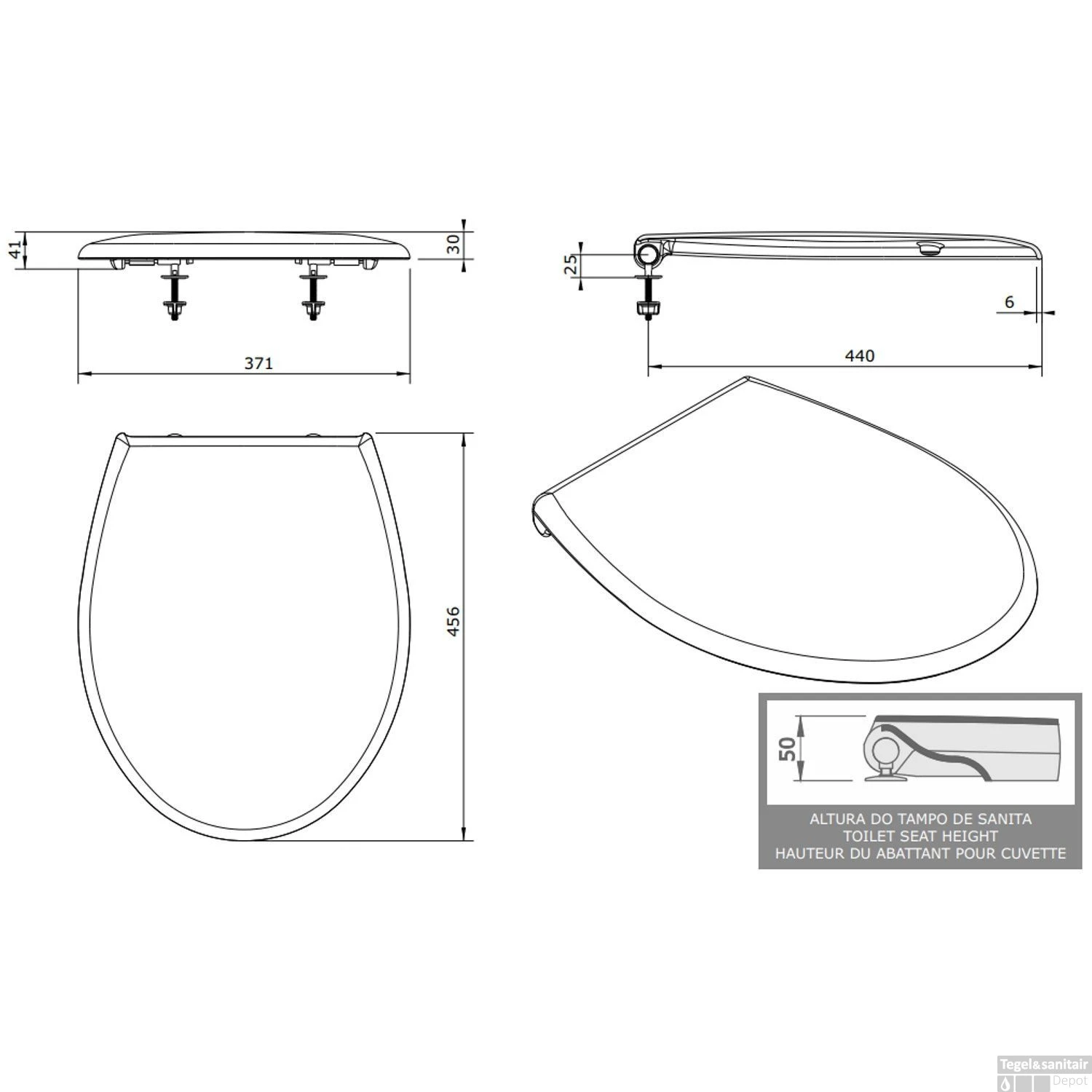 SpecificatiesToiletzitting Sanindusa Cetus Basic Softclose Clip Off met Bevestigingsmateriaal Wit: