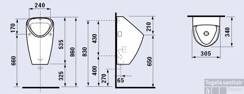Specificaties Urinoir Met Achterinlaat Jika Euroline Keramiek 30.5×34 cm Wit:
