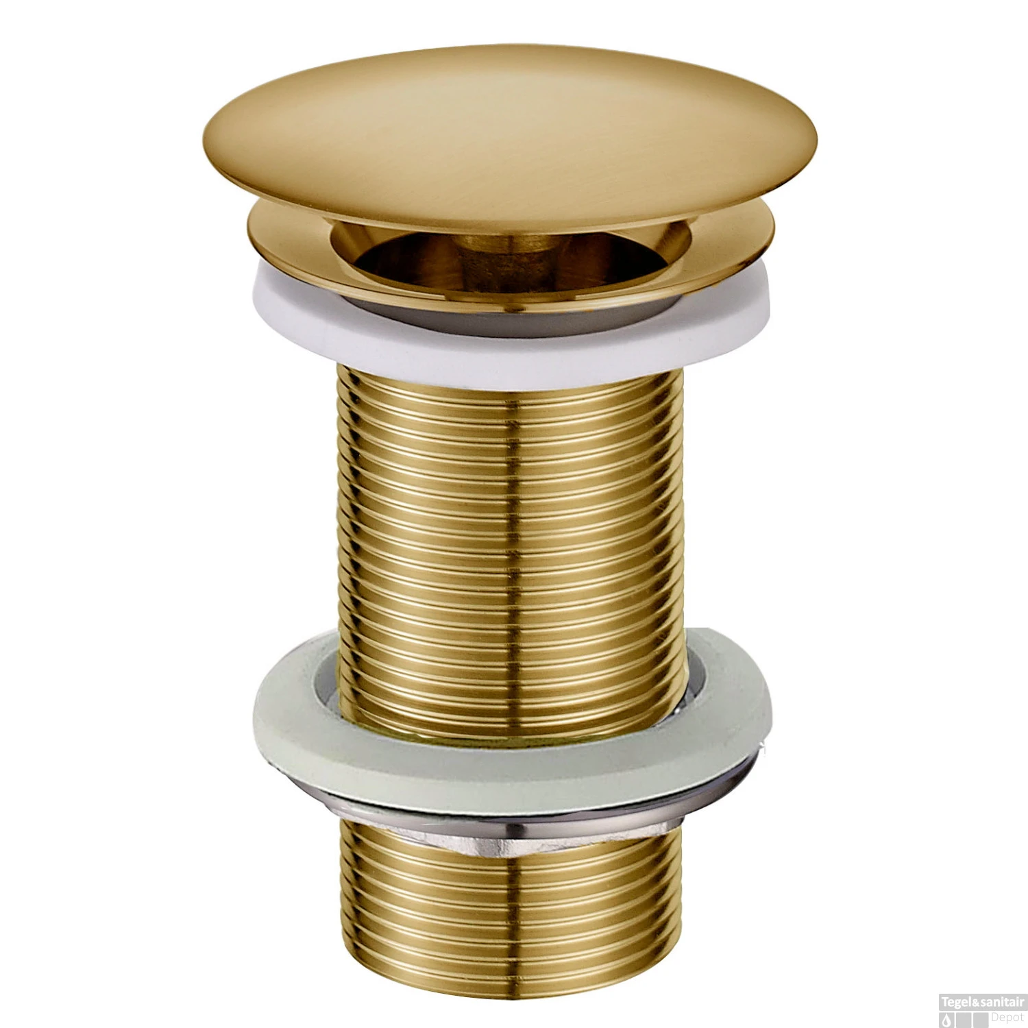 Deze universele verlengde vaste waste in geborsteld messing heeft een verlengde draad en is hierdoor geschikt voor wastafels en fonteintjes zonder overloop in combinatie met een onderliggend topblad. Door verlengde draad overbrug je moeiteloos de langere afstand tot de sifon. Combineer de waste met een bijbehorende Wiesbaden sifon om kleurverschil te voorkomen.
