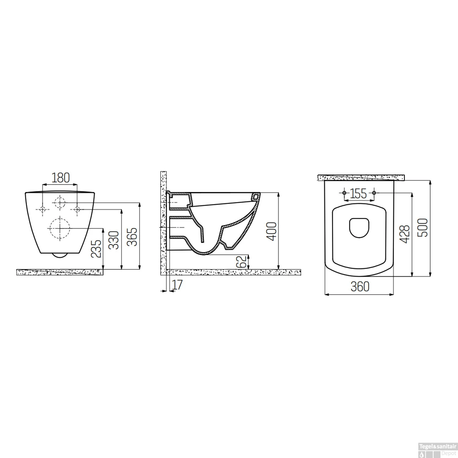 Specificaties Wandcloset Boss & Wessing Design Square Keramiek Wit (Excl. Zitting):