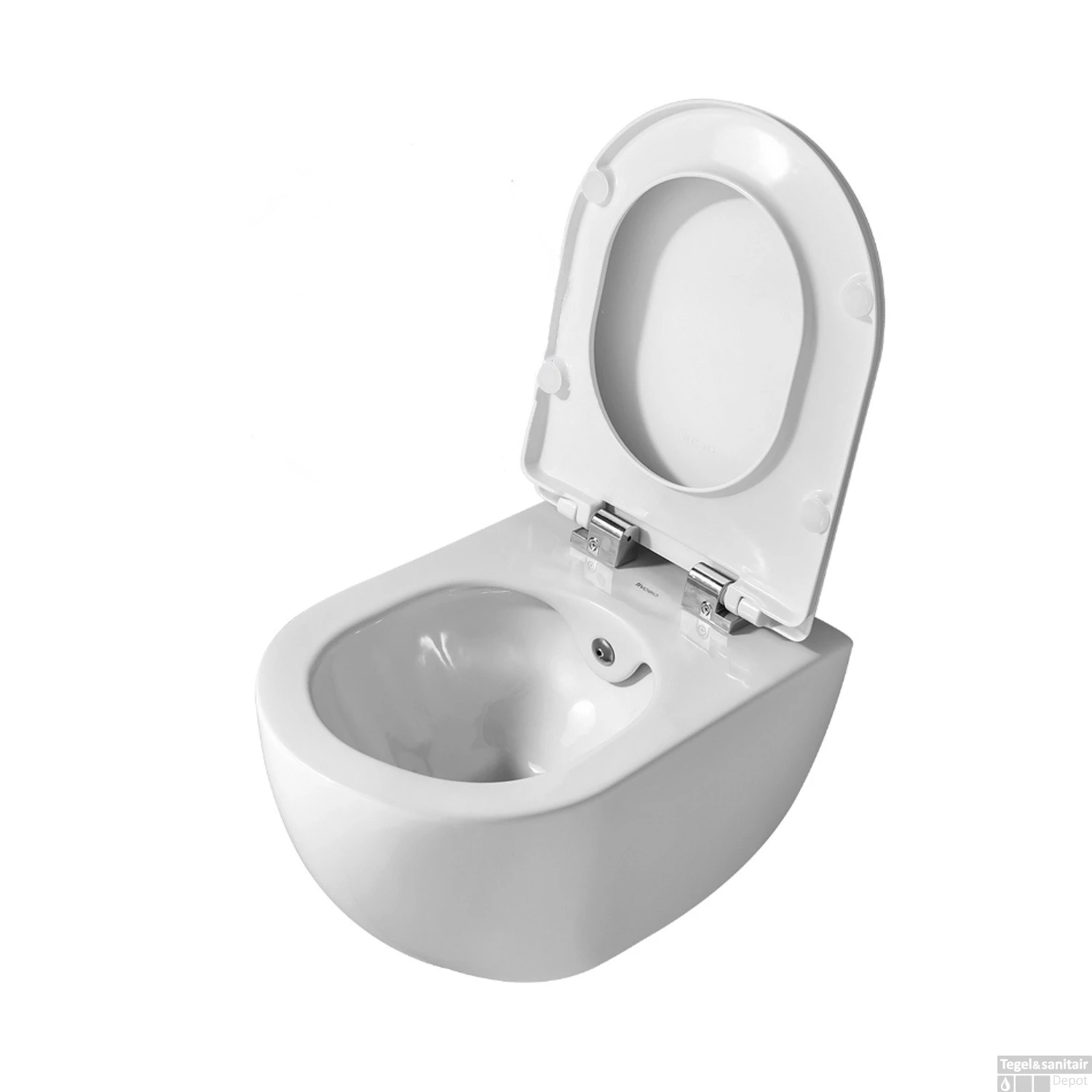 Dit wandcloset is voorzien van een geïntegreerde bidetkraan (koudwaterkraan) die aan de zijkant van het toilet gemonteerd zit. De Randloos uitvoering biedt maximaal comfort op het gebied van hygiëne en schoonmaak. Het toilet heeft namelijk geen spoelrand (Rimless) en zorgt er voor dat er geen verborgen plekken zijn waar vuil zich kan ophopen of waar bacteriën zich kunnen nestelen.