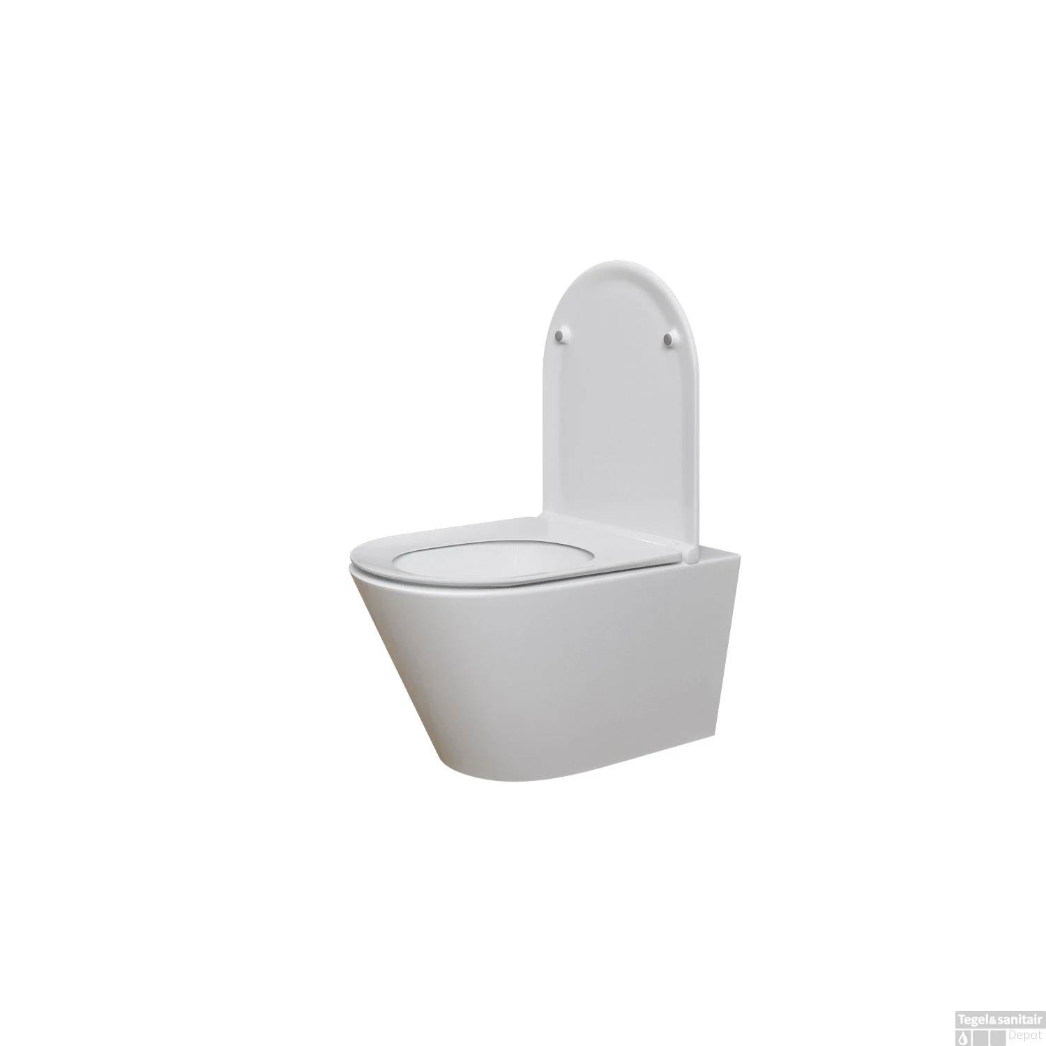 Wandcloset Wiesbaden Stereo Rimless Met Flatline Toiletzitting Glans Wit