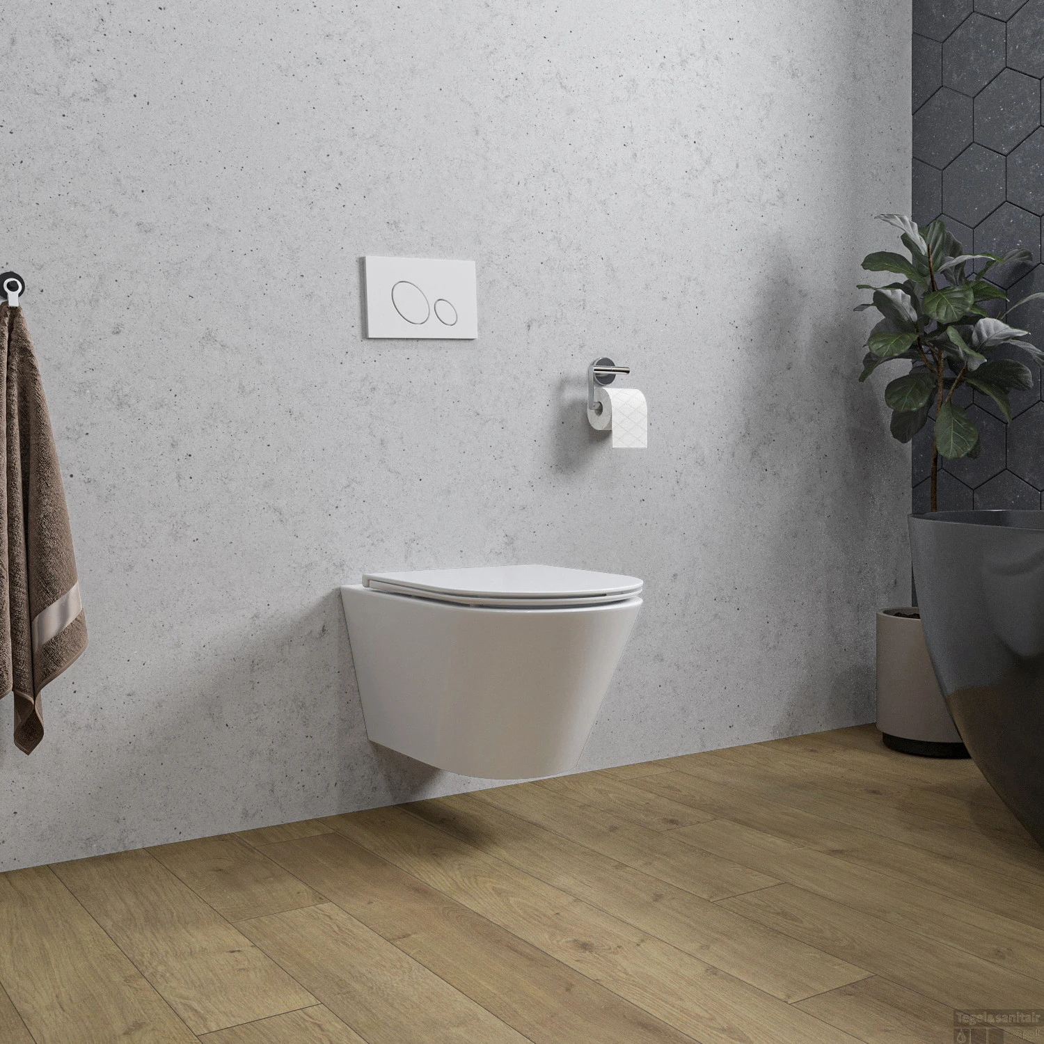 Specificaties Wandcloset Wiesbaden Stereo Rimless Met Flatline Toiletzitting Glans Wit:
