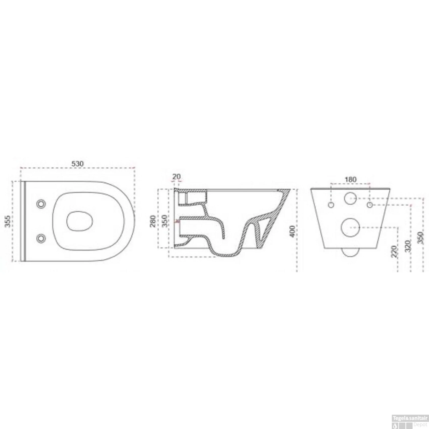 Specificaties Wandcloset Wiesbaden Stereo Rimless Met Vesta Toiletzitting Mat Wit:
