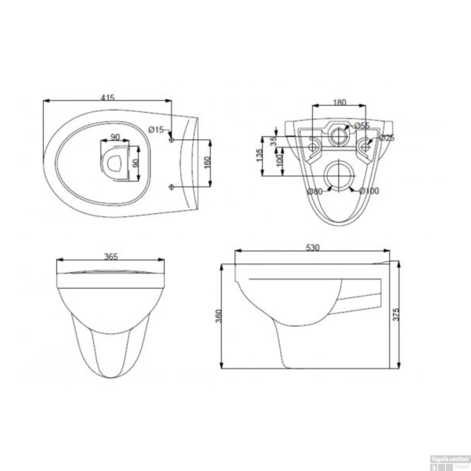 Specificaties Wandcloset Wiesbaden Trevi Diepspoel 36,5x53x36 cm Keramiek Glanzend Wit: