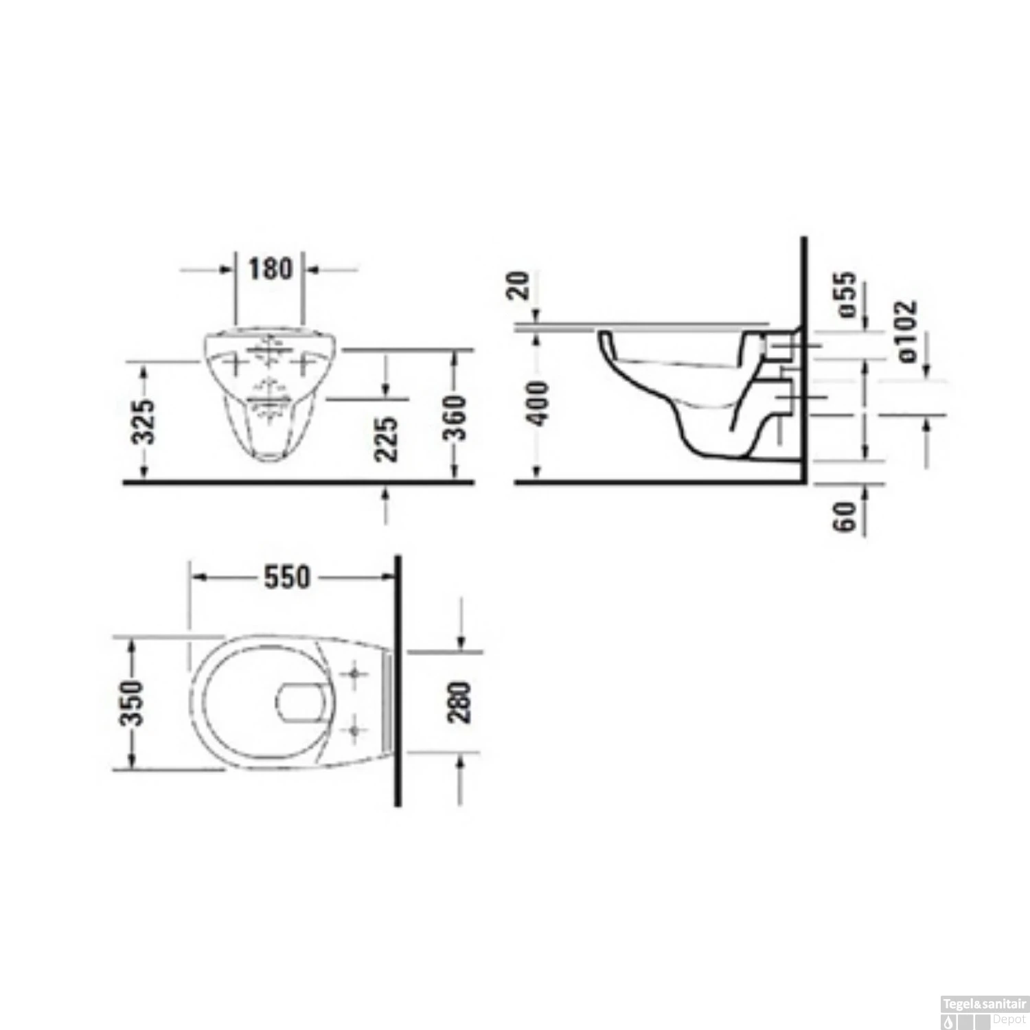 - Diepte: 55 cm