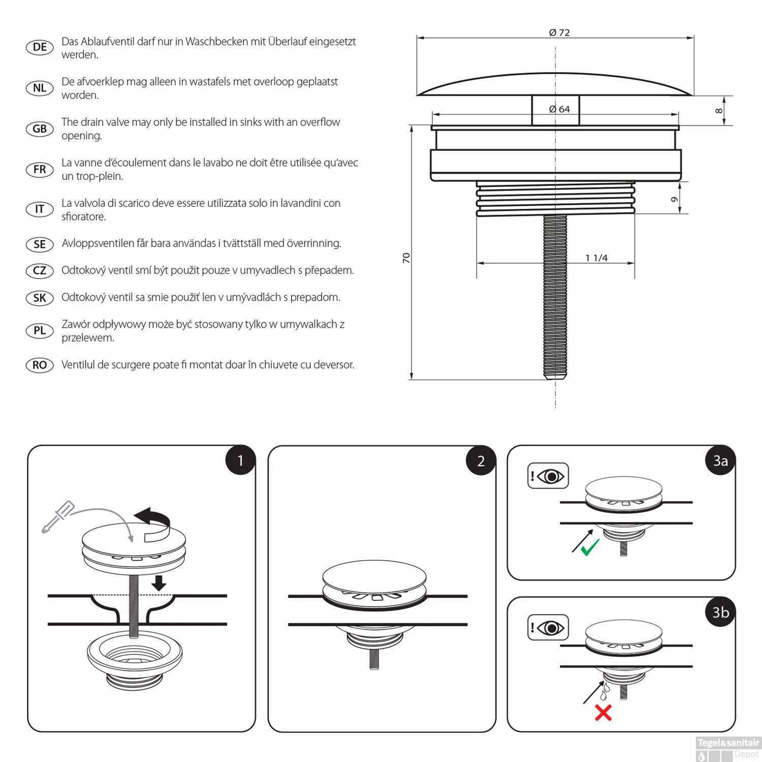 U monteert deze afvoerplug direct in het afvoergat van uw wastafel. Dankzij het schroefdraad kunt u de afvoerplug direct in de wastafel schroeven. Omdat de afvoerplug niet afgesloten kan worden, hoeft u verder geen ingewikkelde handelingen te verrichten om de plug te plaatsen.