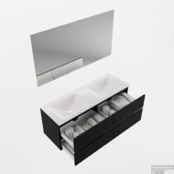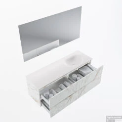 MONDIAZ VICA 140cm Badmeubel Onderkast Rosee 2 Lades. Wastafel CLOUD Links 1 Kraangat, Kleur Talc.