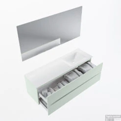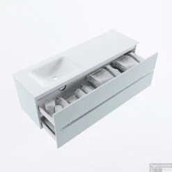 MONDIAZ VICA 150cm Badmeubel Onderkast Clay 2 Lades. Wastafel CLOUD Links 1 Kraangat, Kleur Talc.