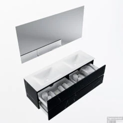 MONDIAZ VICA 160cm Badmeubel Onderkast Oro 4 Lades. Wastafel MOON Dubbel 2 Kraangaten, Kleur Talc.