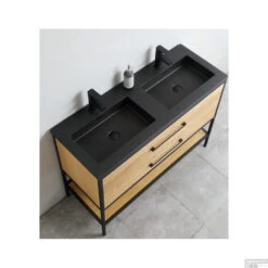 Badkamermeubel Casajoy Miami 120x46x90cm Eiken Met Artificial Stone Wastafel Zwart